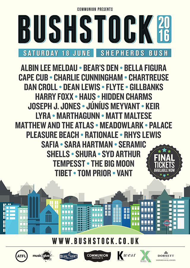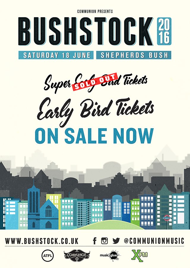 Bushstock 2016 will take place in Shepherd’s Bush on June 18. All Early Bird tickets are sold out and the final remaining tickets, priced at £32.50, are now on sale here.