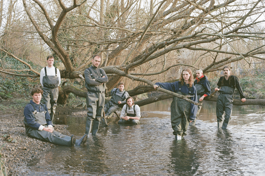 The self-titled debut album from London-based eight piece caroline is out now. On it, songs can cascade like an avalanche with the full force of so many instruments, squalling and rumbling on the edge of all-out collapse. At other times they slip back into impossibly fragile moments of quiet – a simple bassline or a rattle of snare the only sound amid a dark sea of silence. caroline know exactly the right balance between restraint and release. “Sometimes things sound much better when there’s empty space,” says Llewellyn. “Sometimes you might populate [a song] with too many things and forget that an element on its own is enough.”
