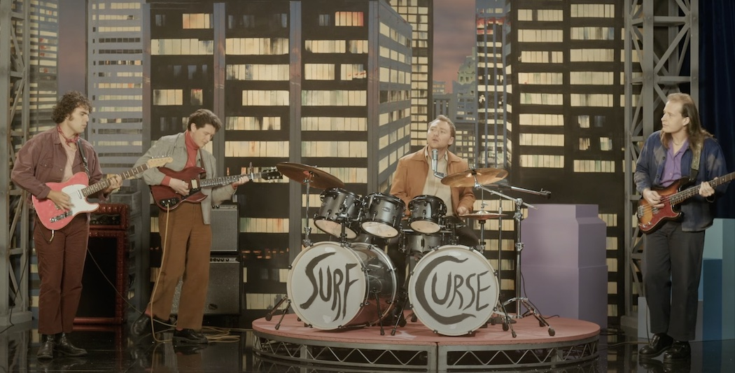 Usually one waits until they release a song before they label it a “global smash hit.” But Los Angeles-based rockers Surf Curse have taken a bold approach with their latest single “Sugar” and its video directed by the band’s two core members Nick Rattigan and Jacob Rubeck. The now-fourpiece performs on a fake talk show where the nerdy host announces their performance of the major hit, which it has yet to become in our own reality. The band is manifesting. Or maybe Surf Curse knew they had a hit on their hands after brushing shoulders with viral fame recently when “Freaks” from their debut album “Buds” went viral on TikTok nearly a decade after its release.