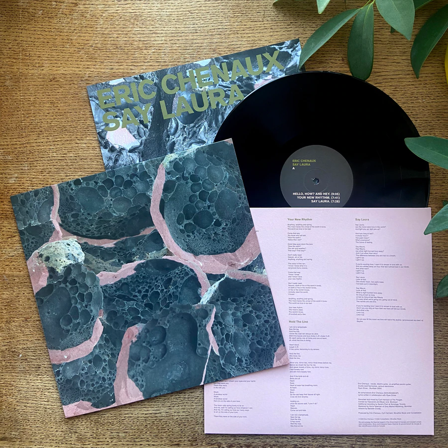 The new record by Eric Chenaux is his most immaculate and pristine. “Say Laura” perfectly incarnates the counter-intuitive interplay of instrument and voice that Chenaux has been revealing and revelling in throughout the past decade: his gently unhinged juxtaposition of resplendently smooth, seductively assured singing and puckish, frazzled, thoroughly destabilized guitar could come from no other musician. The five wandering, wondering ballads on “Say Laura” bring Chenaux’s semi-improvised but keenly intentional song writing to its fullest, clearest, warmest and coolest articulation; uncompromising and generous, hyper-specific and loose, spartan and luxurious, elemental and ornate.