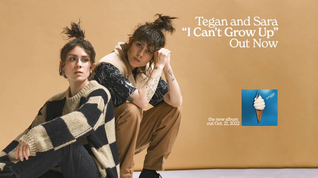 The punchy, propulsive “I Can’t Grow Up” is the latest single off Tegan and Sara’s new album, “Crybaby”, which is out next month. The song “was musically inspired by Chicago band Dehd and their album “Flower of Devotion,” Sara Quin says. “The song started on bass, an instrument I’d never written with until “Crybaby”, and I was channelling a little bit of Emily Kempf from Dehd, and Peter Hook from New Order. My partner had travelled back to the U.S., after a year of being stuck in Canada during the pandemic, and I was enjoying late nights alone writing music and singing full tilt in the basement.”