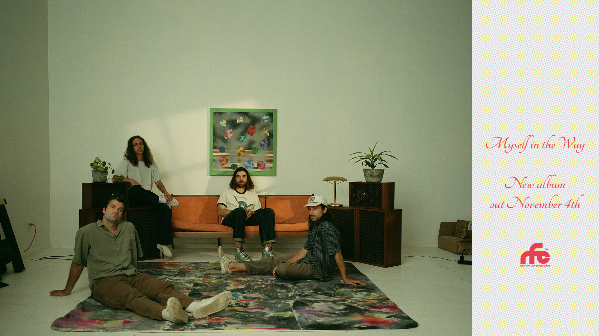“Myself in the Way” was born out of Turnover’s desire to continue evolving their sound, making each body of work more exploratory than the last, but it’s also a byproduct of the band’s growth both as individuals and collectively. Armed with a flurry of new ways for the band to express themselves creatively, they challenged themselves to make their most ambitious body of work to date. Co-produced by frontman Austin Getz alongside frequent collaborator Will Yip, “Myself In The Way” sounds more expansive than anything they’ve done, intently honing in on sound design this time around, and yet it’s wholeheartedly more intimate and self-reliant on their vision and execution. Bassist Danny Dempsey painted the cover artwork himself, and longtime touring guitarist Nick Rayfield contributed songs to the album to lend an additional spark.