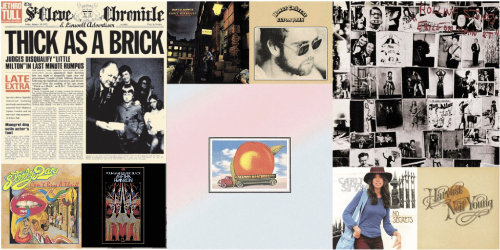 Recordings made by some of the biggest classic rock artists of the era dominated the list of 1972’s top-selling albums, all-time classics among the year’s Top 20 sellers, including legendary albums by Jethro Tull, the Rolling Stones, Yes and Neil Young.