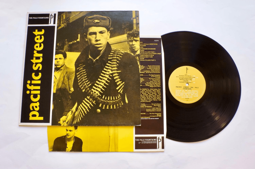 Signing with Virgin Records in late 1982, this was the first time the music world became aware of the work of singer-songwriter Michael Head. Inspired by 1960s music such as Love, Burt Bacharach and The Beatles, the group released their debut single “(There’s Always) Something on My Mind” on Les Disques du Crépuscule before signing a major label deal in October 1982. Although the Pale Fountains failed to make much commercial headway, the band earned critical praise for the two albums released on the Virgin Label “Pacific Street” released in (1984) and …“From Across the Kitchen Table” the following year (1985), was produced by Ian Broudie, who later found fame with The Lightning Seeds