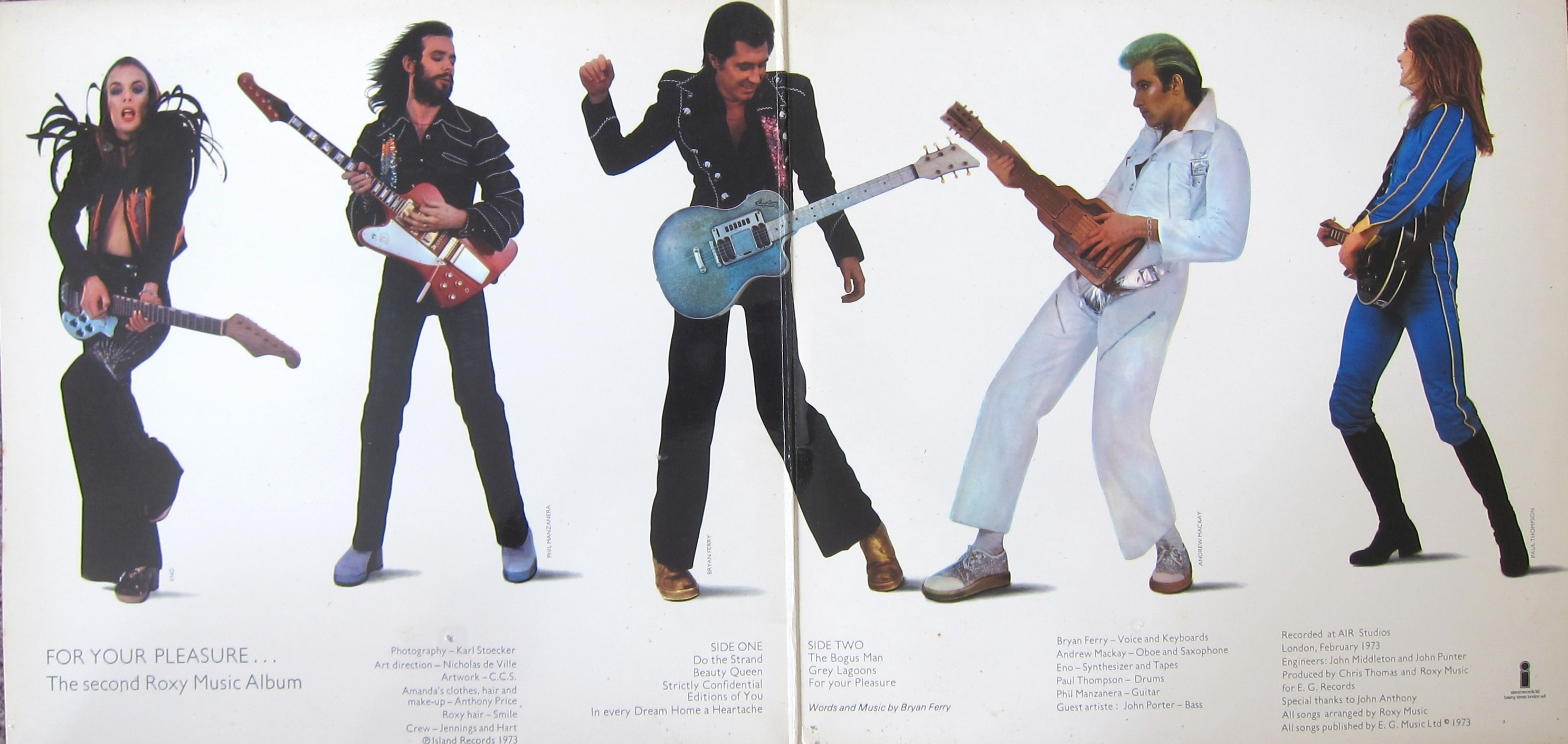 “The first album was interesting and obviously pointed to several different directions, but “For Your Pleasure” was a big album for me. We’d been on the road and were much more experienced and integrated. We recorded in Air Studios with engineers in lab coats, high above Oxford Street, with people running around below. It felt like the center of everything. The album just felt more mature: darker, with better singing.”