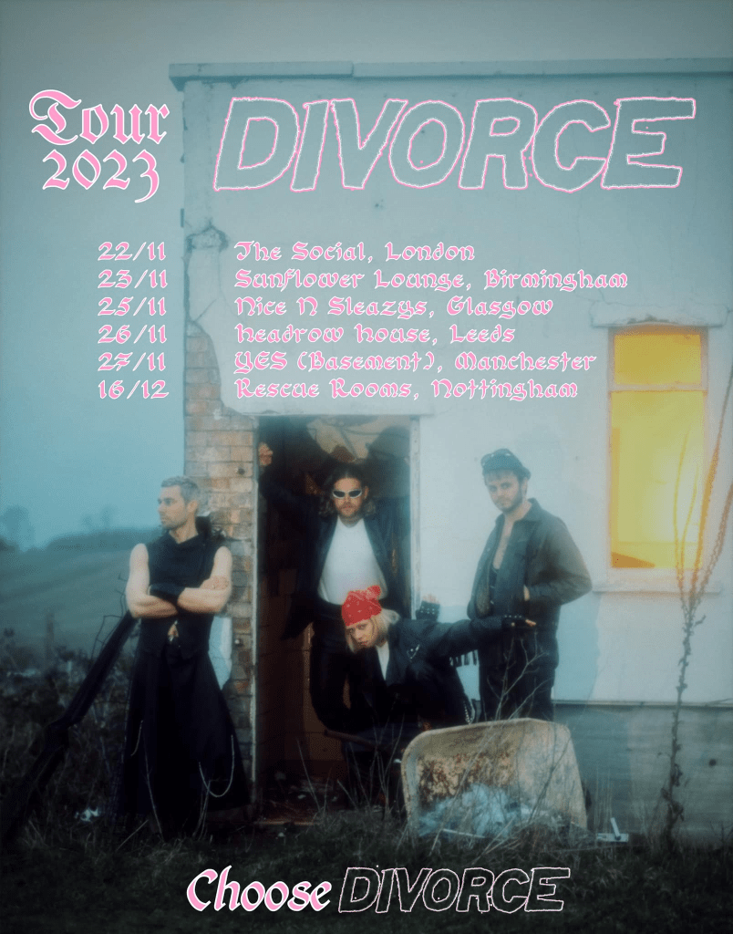 the news that the band have signed to Gravity/EMI Records. Divorce will also be heading out on a headline UK tour this November, with tickets going on sale at 10am on 15th June. The four-piece will also play a string of dates supporting Willie J Healey.