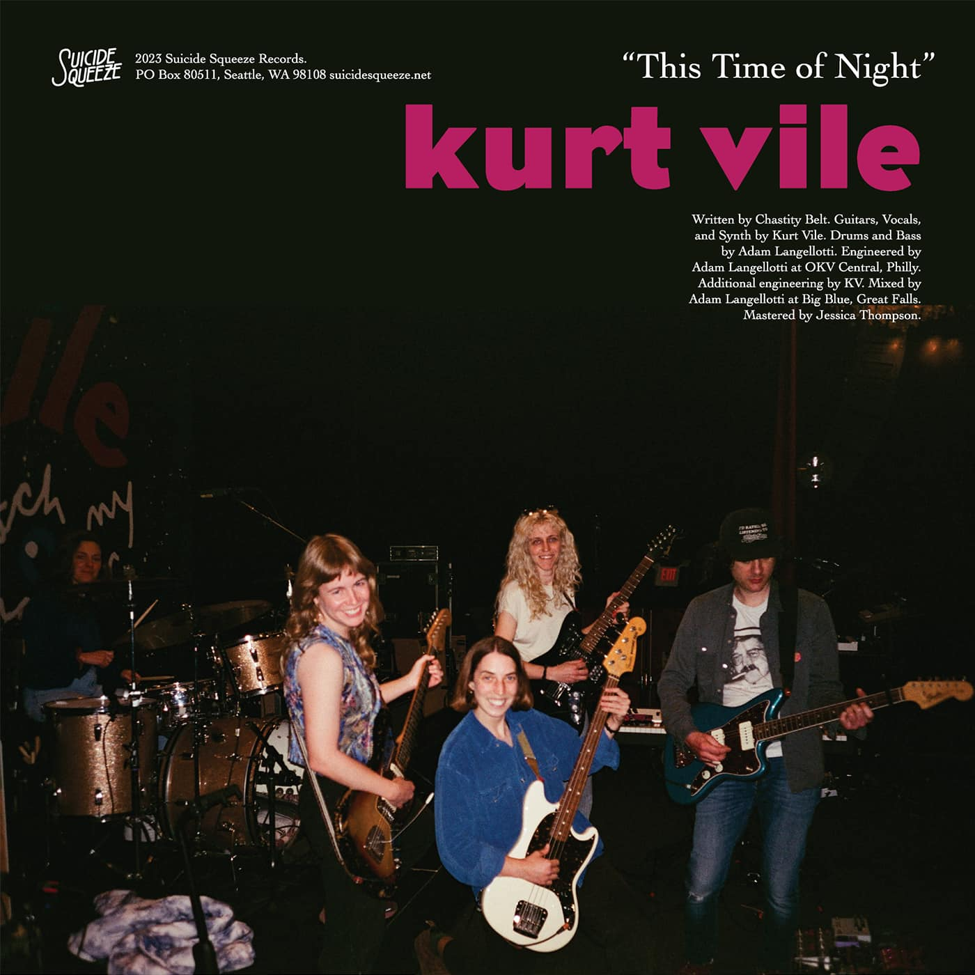 Suicide Squeeze celebrates Chastity Belt with the latest in its split 7″ single series–a pair of covers by Friends of the Band and tourmates Kurt Vile and Courtney Barnett. For this release, Kurt and Courtney each recorded a song from the band’s third album, 2017’s “I Used to Spend So Much Time Alone”, in their signature styles. Side K is Kurt’s version of “This Time of Night,” on which he lovingly recreates the anxious interplay of Julia Shapiro and Lydia Lund’s guitars, stretching each note of the song’s fraught vocal melody to its breaking point.