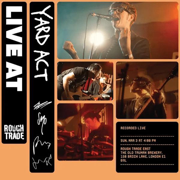 Yard Act – Live At Rough Trade is a raucous recording live from Rough Trade East with a selection of the band’s newer cuts ‘Dream Job’, ‘We Make Hits’ and ‘The Trenchcoat Museum’ . Yard Act are from Leeds, West Yorkshire, composed of James Smith (vocals, lyrics), Ryan Needham (bass), Sam Shipstone (guitar) and Jay Russell (drums). Prior to forming the band, vocalist James Smith and bassist Ryan Needham had both been members of other Leeds-based bands. Smith was a member of Post War Glamour Girls and Needham played in Menace Beach, Their debut album, “The Overload”, was released January 2022.