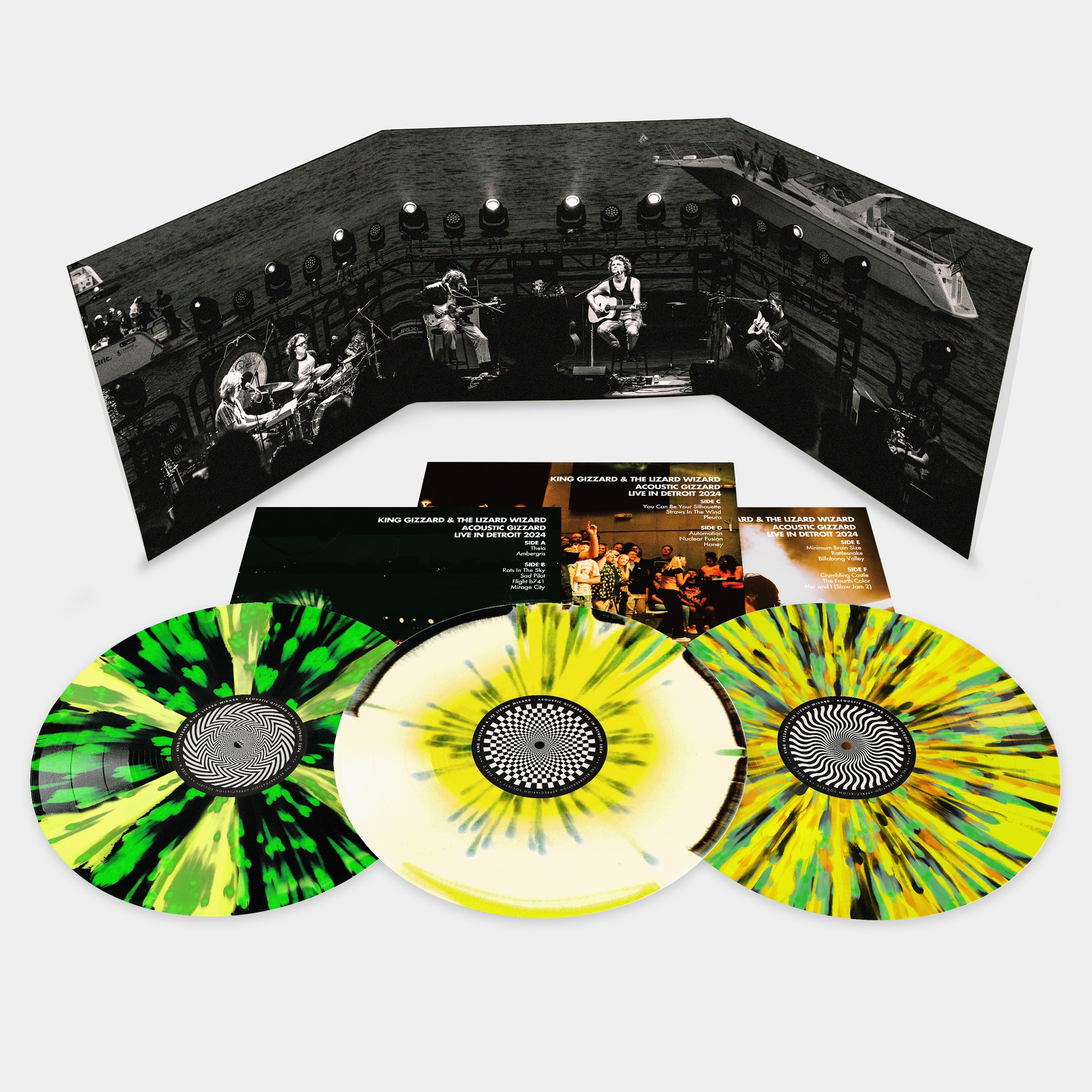 This bootleg album captures the first acoustic set of the 2024 tour in all its glory, pressed up on some sick tri-colour vinyl, each a different design over 3 LPs. Recorded Live at The Aretha Franklin Amphitheater, Detroit, MI, USA August 23rd, 2024.