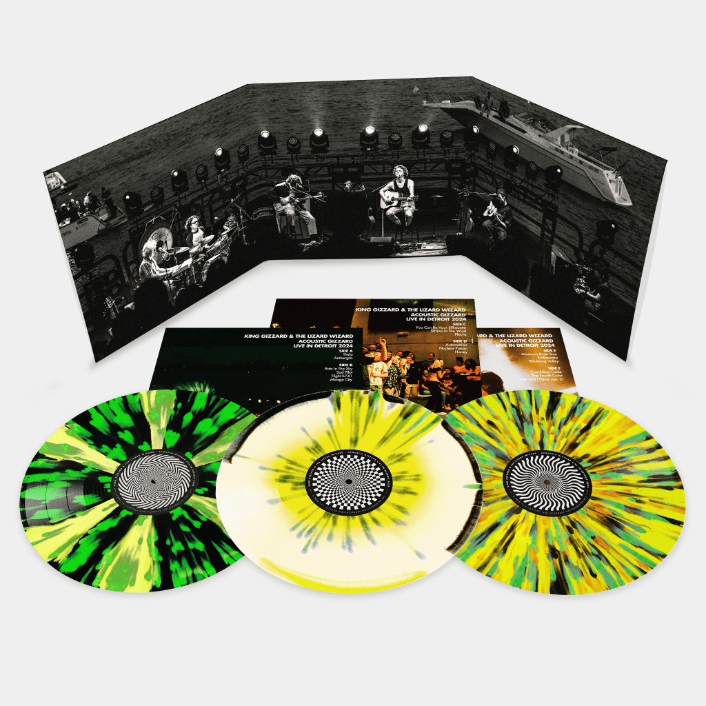 King Gizzard & The Lizard Wizard on their last leg of their tour the band played a special acoustic set, and as soon as the Detroit show dropped on the Official Bootleggers’ series we knew we had to press it up. The acoustic Gizz sets almost prefer this version of “Theia” to the studio versions, “You Can Be Your Silhouette” sounds so good acoustically, and the tracks from “B741” as other notable highlights as well. However, it’s also funny to hear them attempt songs that don’t translate that well acoustically, While also allegedly being very drunk on stage, a very bold decision to play “Crumbling Castle/Fourth Color while wasted.