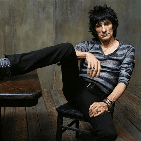 Born in a council house in Yiewsley, Hillingdon, as a kid Ronnie Wood was known as Young Timber (his dad was Timber) and the pair toured the racetracks of the south England in a 24-piece harmonica band that gave Ronnie the taste for the high life. He began playing guitar in The Birds in 1964, moved on to the psych-rock outfit The Creation, and participated in Jeff Beck’s late 60s blues and rock mash-ups Truth and Beck-Ola. He joined Small Faces after Steve Marriott’s departure and lasted the course when they became Faces, also decorating Rod Stewart’s fine albums “An Old Raincoat, Will Never Let You Down”, “Gasoline Alley” and “Every Picture Tells A Story“. He joined the Stones when Mick Taylor left in 1975, and has played with them ever since.