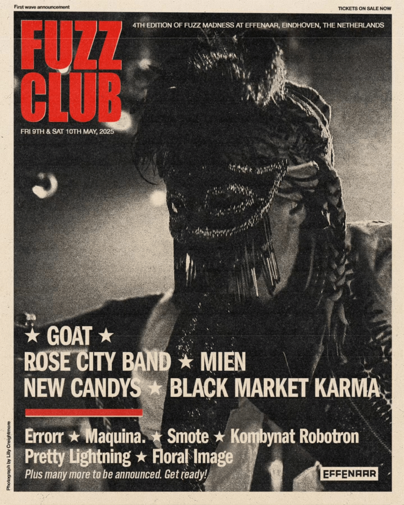 Eindhoven will once again dive into two days of the best of psych, dystopian visuals and vinyl. For those who love everything fuzz, reverb, and drone, we’re excited to announce a collaboration with London-based indie label Fuzz Club for a new edition of the Fuzz Club Festival. Join us on Friday, May 9th, and Saturday, May 10th, with performances by Goat, Rose City Band, MIEN, New Candys, and many more!