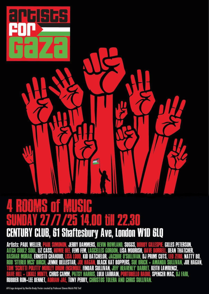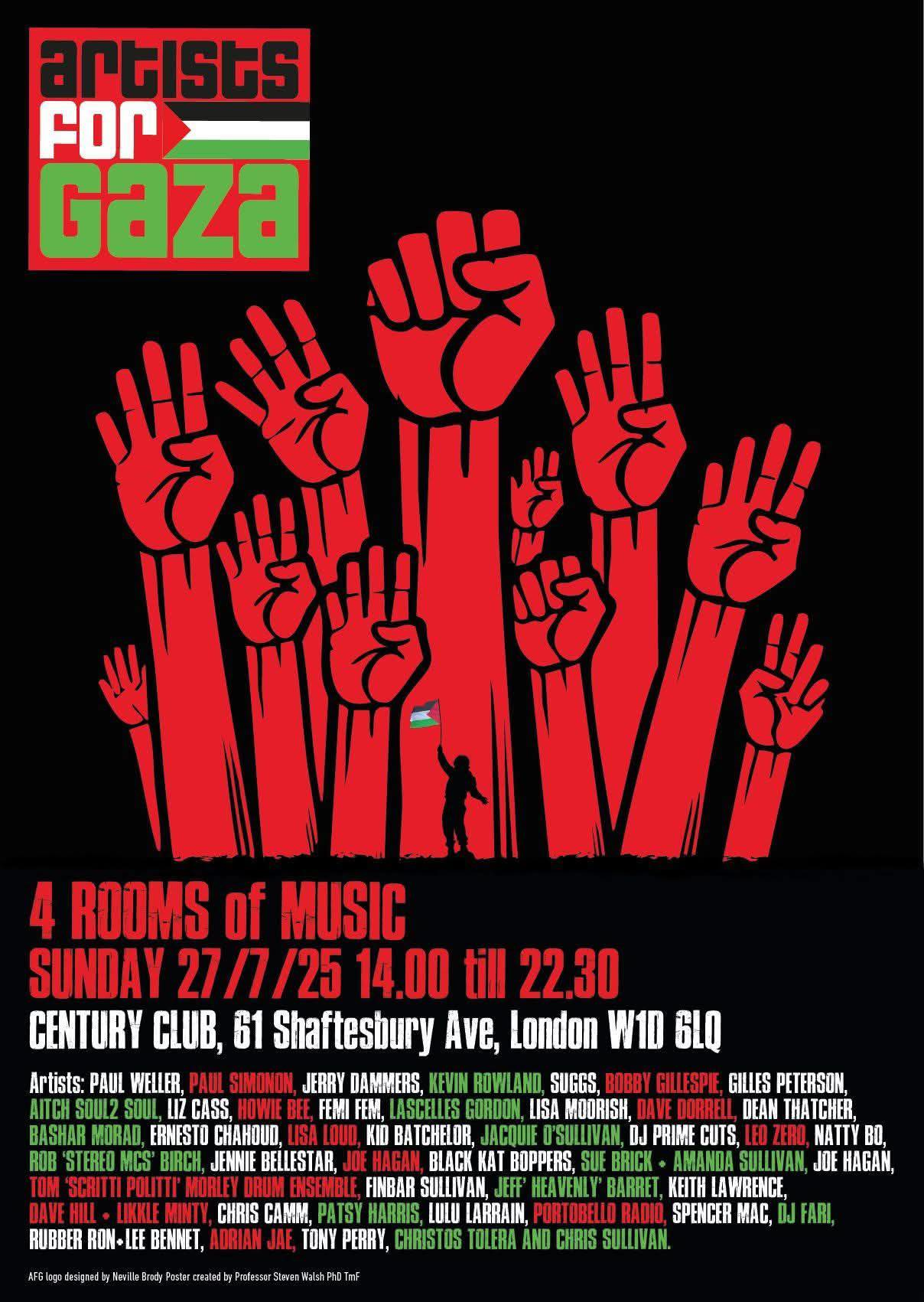 ARTISTS FOR GAZA – Century Club London 27th July 2025