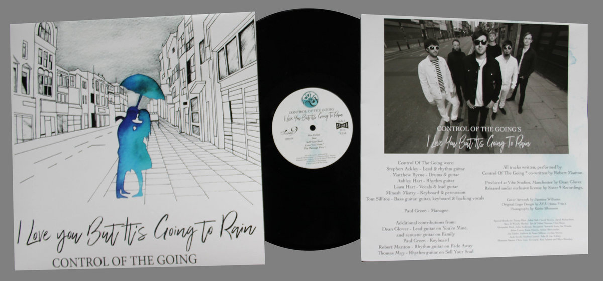 The debut album by Manchester psychedelic rock & roll 6-piece, Control Of The Going. “I Love You, But It’s Going To Rain” is the majestically-titled debut album from Control Of The Going, a band that’s blossomed from the slightly awkward kids that you’d see at every vaguely psychedelic gig in town to one of the leading lights in that very scene that they belonged to. They’ve naturally spread their wings further afield as this record demonstrates, its real power and beauty in the way they’ve taken their influences, span them round, put their own twist on them and made something so ambitious, widescreen yet still peculiarly (Greater) Mancunian in its impact. The rumbling guitars that usher in opening track War Crime give way to pulsating drums, but quickly come back to reclaim their crown. One of the most immediate observations with the album is the amount of space that producer Dean Glover affords these songs, no mean feat given that there’s six of Control Of The Going in action. Liam half sings, half drawls through the chorus, one part dark Californian, one part resembling Ride’s earliest work. As we’ll discover listening further, they never stand still at any point on this record.
