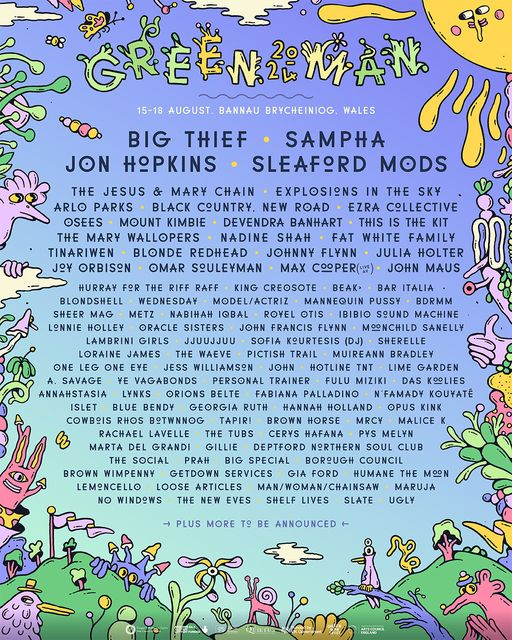 A mighty welcome to your four headliners – the luminous Big Thief ready to captivate with five albums of startlingly brilliant indie-folk. Mercury-winning Sampha makes his Green Man debut, with a headline set that’s sure to reach dizzying heights. GM favourite, Jon Hopkins, who brings his pioneering electronic soundscape to the Mountain Stage. And post-punk heroes Sleaford Mods and their heavy dose of cathartic energy!